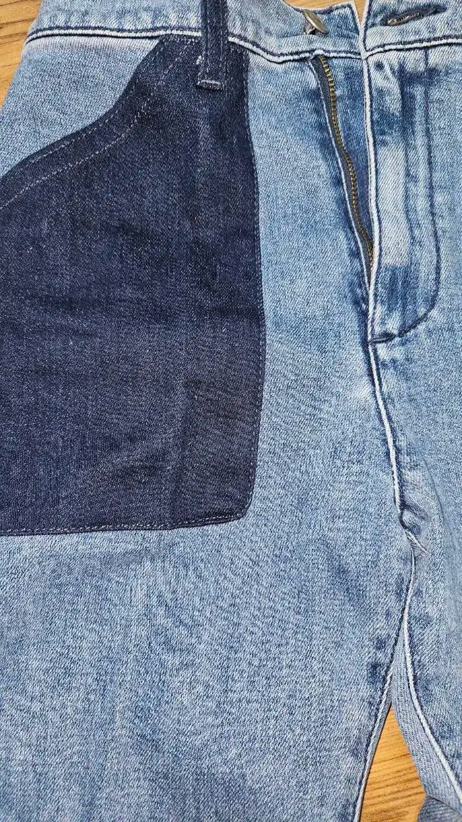 ユニークなバイカラーデニムのブーツカット デニムです。