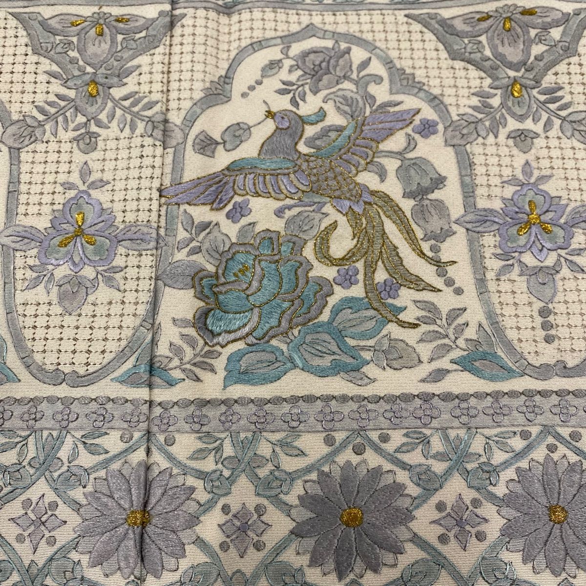 訪問着 身丈160cm 裄丈65cm M 袷 花食い鳥 草花 刺繍 金糸 クリーム 正絹 名品 一つ紋の検索結果