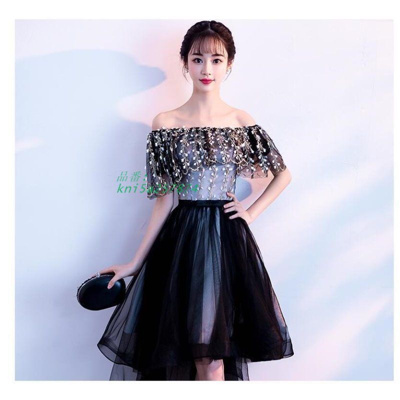 パーティードレス 韓国 おしゃれ 安い お呼ばれ 二次会 謝恩会 結婚式 成人式 膝丈 個性的 可愛い ワンピース プチプラ ロング丈 黒 kni4a835035