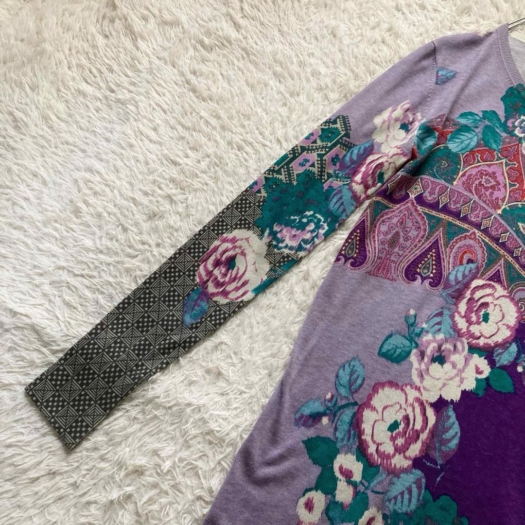 ETRO エトロ イタリア製 シルクカシミヤ ニットワンピース ロングワンピース 花柄 ペイズリー プルオーバー 長袖 ロングスリーブ 42サイズ パープル グリーン ピンク WWW_NICORILABO_COM