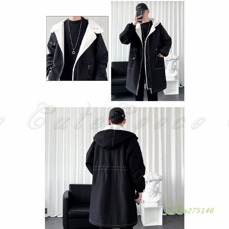 中綿コート ジャケット ロング丈 メンズ 裏ボア付き 暖かい ファッション 保温 送料無料 縦長効果 デート 防寒 お出掛け かっこいい フード付き 防風 旅行 pai5a275146 WWW_NICORILABO_COM