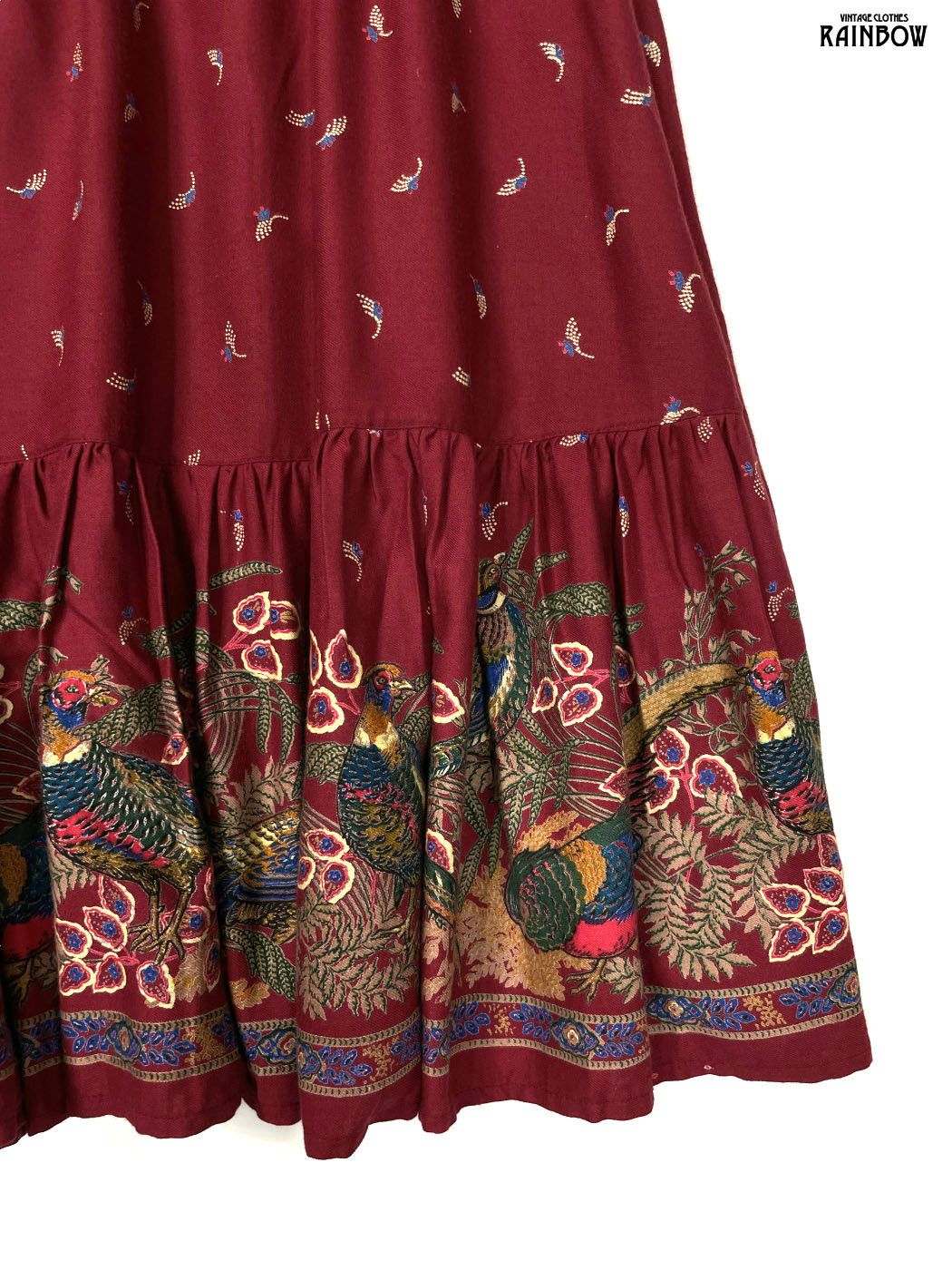 古着 鳥 キジ 総柄 コットン 膝丈 スカート 赤 ボルドー btu2509096の検索結果