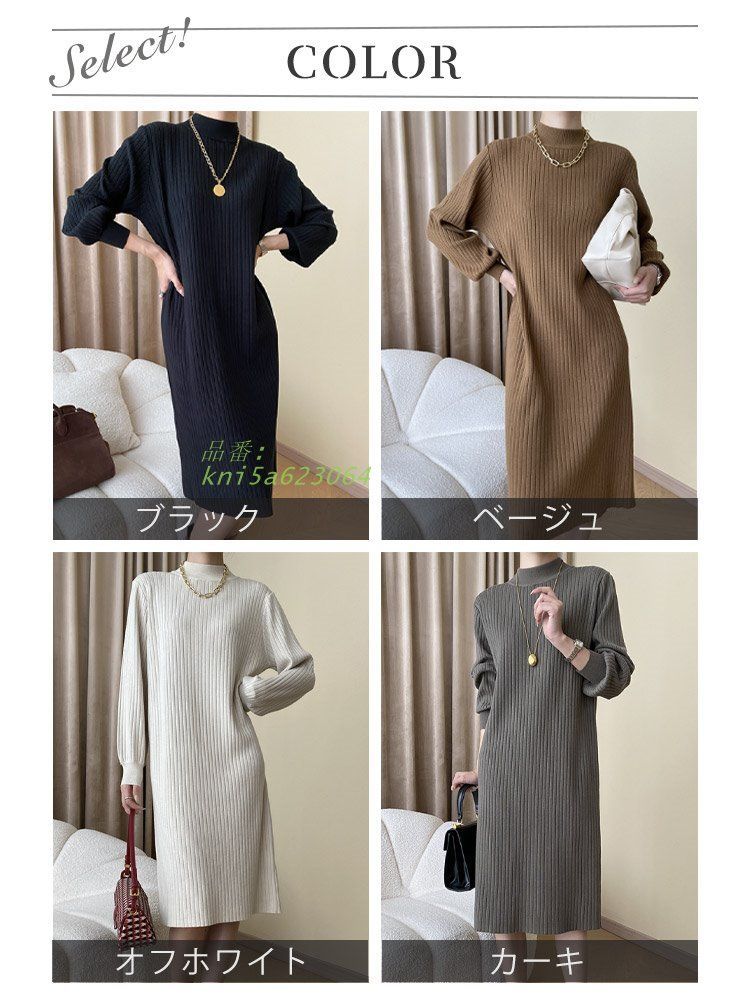 ニットワンピース レディース 韓国 モックネック ハイネック リブニット ひざ下 体系カバー ワンピース ニット ひざ丈 ストレッチ 長袖 ゆったり kni5a623064 WWW_NICORILABO_COM