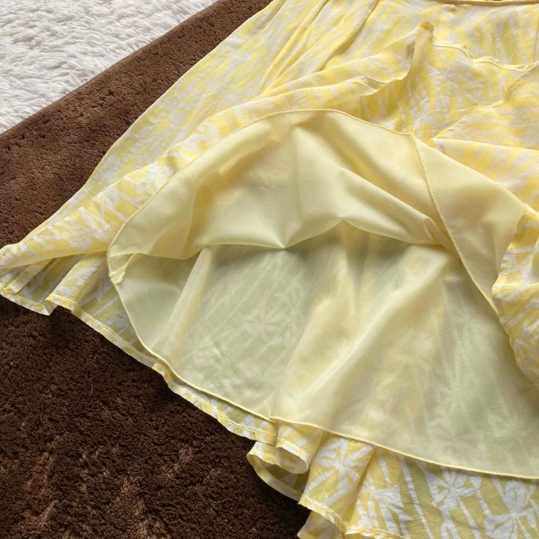 BLUGIRL BLUMARINE ブルーガール ブルマリン フ スカート Aライン りぼん柄 総柄 シアー シースルー コットンシルク イタリア製 イエロー ホワイト I38|D32サイズ WWW_NICORILABO_COM