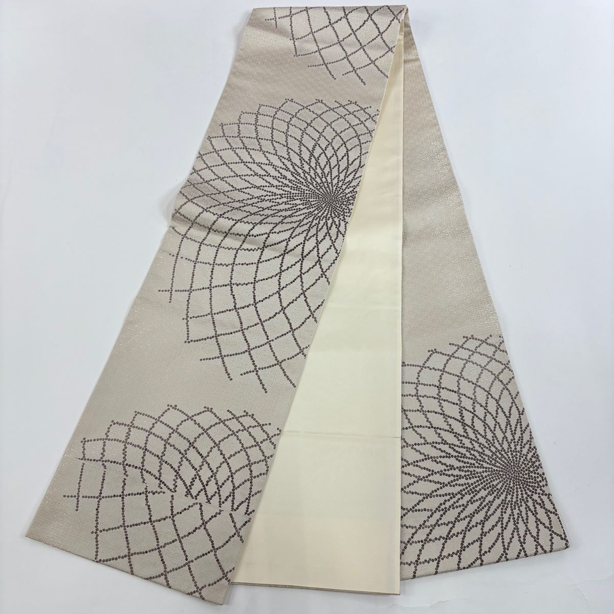 小紋 身丈156.5cm 裄丈63cm S 袷 花柄 幾何学模様 灰茶 正絹 秀品