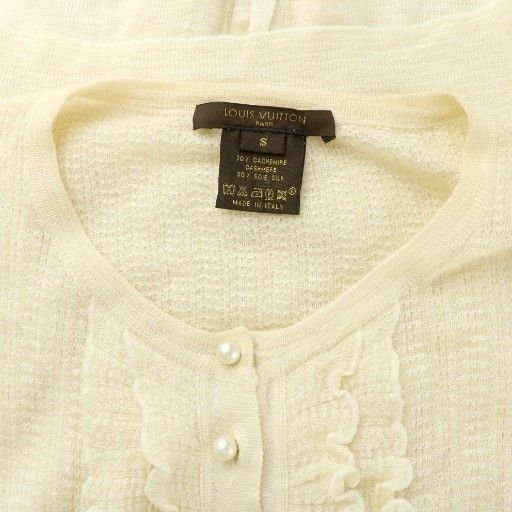 ルイヴィトン LOUIS VUITTON カーディガン アウター 長袖 フリル カシミヤ シルク混 パール S 黄 イエローの検索結果