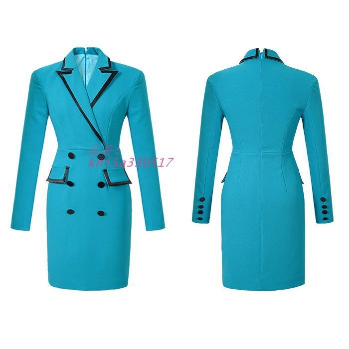 大きめ襟カシュクールVネック 長袖ジャケットスーツ風 ショートワンピース 青 キャバ スナック レディース ラウンジ 服 韓国 kni5a330517 WWW_NICORILABO_COM