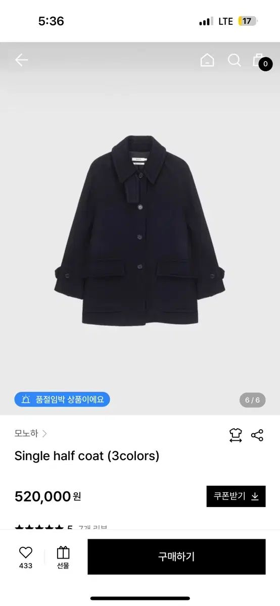 モノハ Single ハーフ コート ネイビーの検索結果