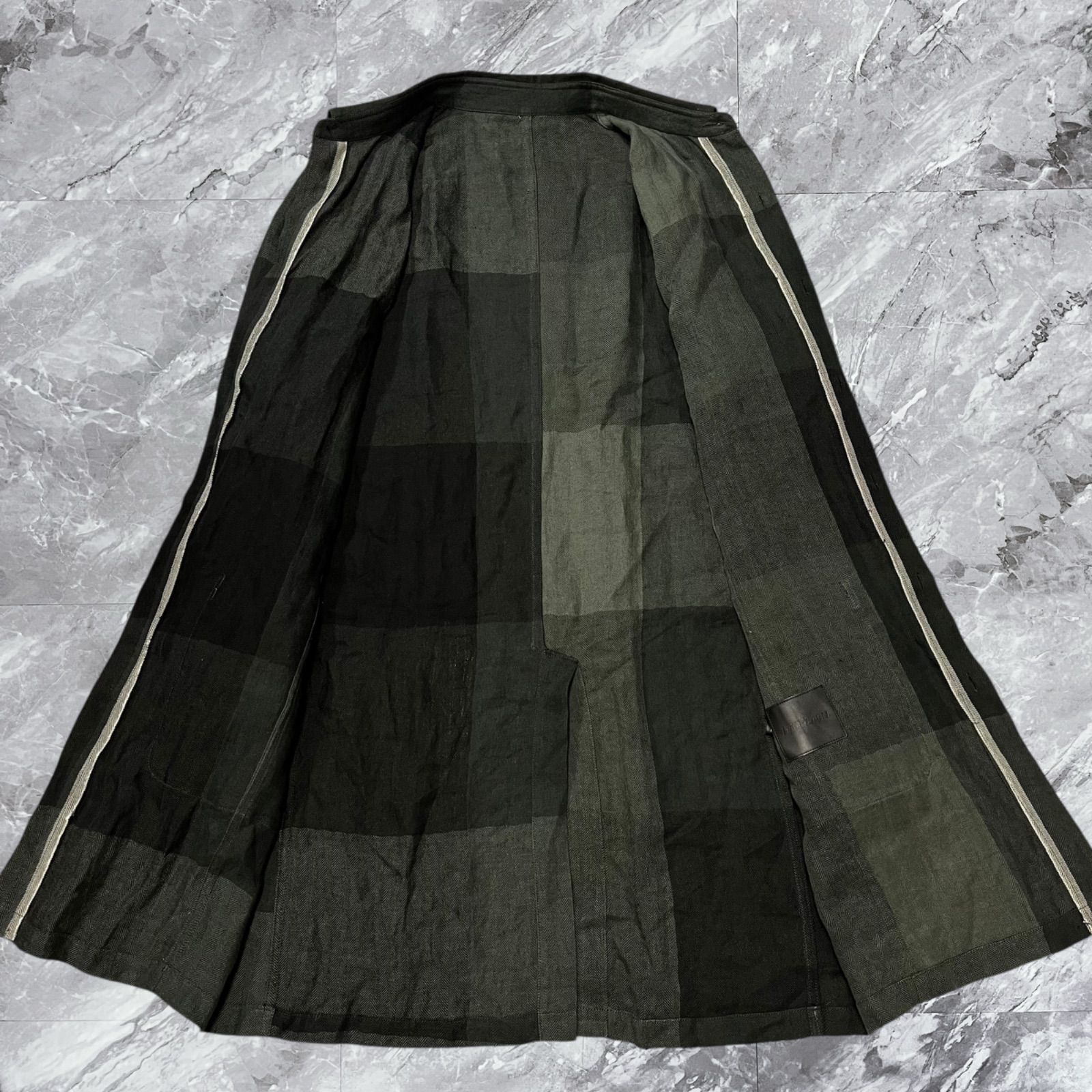 大きいサイズ ISAMU KATAYAMA BACKLASH イサムカタヤマバックラッシュ ステン コート ロングコート チェック ヘリンボーン リネン 麻 カンガルー革 本革 比翼ボタン グレー系 灰色 サイズXLの検索結果