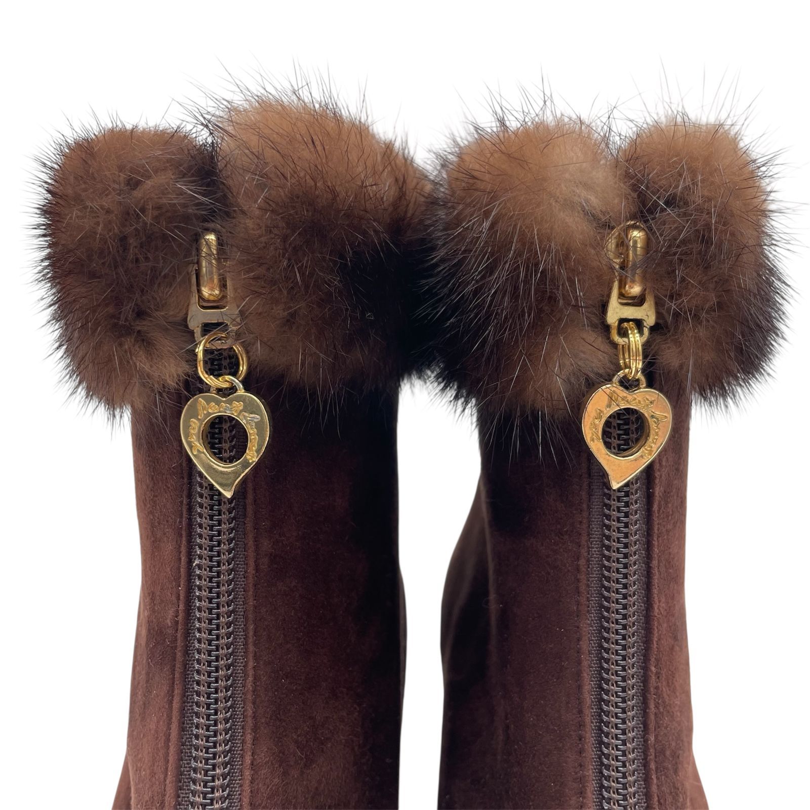 Yves Saint Laurent サンローラン YSL ショートブーツ ミンクファー ブラウン スエード 351|2 22.5cm ファー チャーム ブーティ WWW_NICORILABO_COM