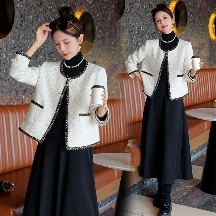 セットアップ スカートスーツ レディース 2点セット スーツ ママスーツ 上下セット フォーマル ツイードジャケット-ロングスカート ノーカラージャケット ウエストゴム エレガント 通勤 OL 女性 オフィス 事務所 体型カバー 着痩せ 春 秋 maidi01 WWW_NICORILABO_COM