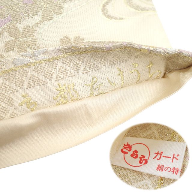新古品 袋帯 ♥ フォーマル 正絹 金華山織 京都 西陣 京都たけうち 金糸 銀糸 白ベージュ 薄紫 流水 桜 花 春 秋 冬 袋帯 オフホワイト ガード加工済み 仕立て上がり みやがわ sb54630 WWW_NICORILABO_COM