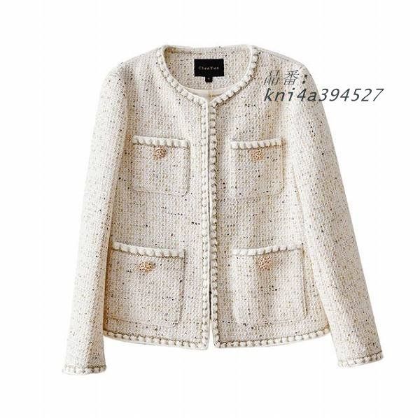ノーカラージャケット ゴージャス ホワイト 上品 入学式 結婚式 大きいサイズ有り Sから2L送料無料通勤20代30代40代50代60代 イベント kni4a394527 WWW_NICORILABO_COM