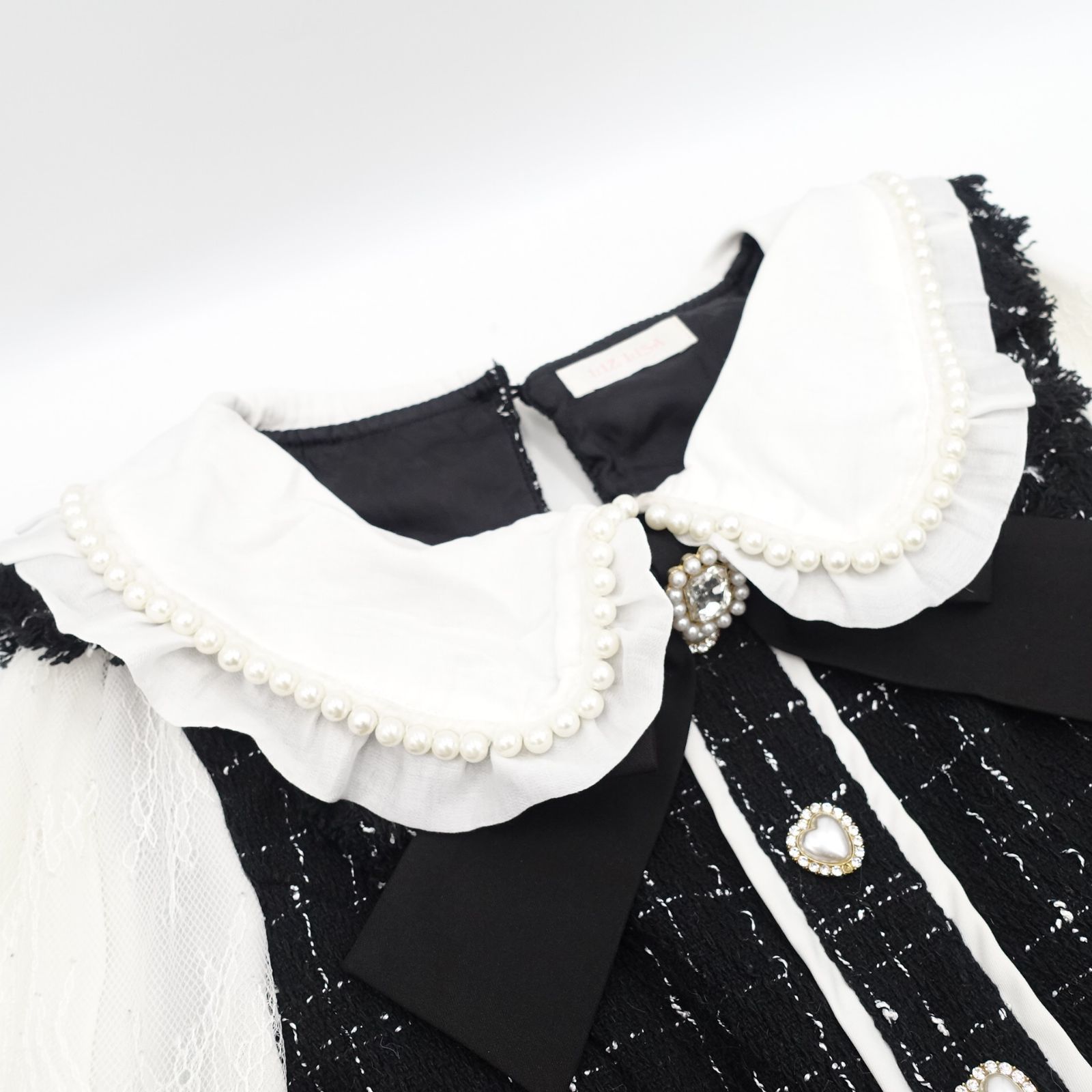 LIZ LISA リボンツイードセットアップ 0|Fサイズ ブラック 黒 レース 丸襟 ビジュー パール リズリサの検索結果