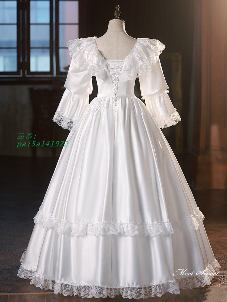 ウェディングドレス ロングドレス プリンセスドレス フリル レトロ Aラインドレス 花嫁 長袖 ウエディングドレス 結婚式 サテン ブライダル 二次会 前撮り pai5a141922 WWW_NICORILABO_COM