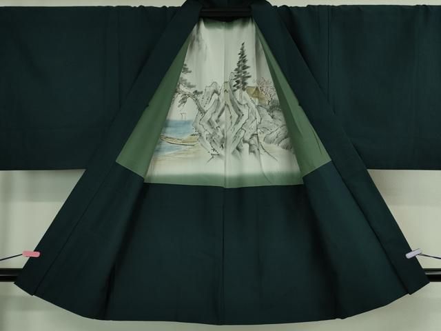 平和屋着物●男性 黒紋付 羽織セット 正絹 CAAZ0953vf
