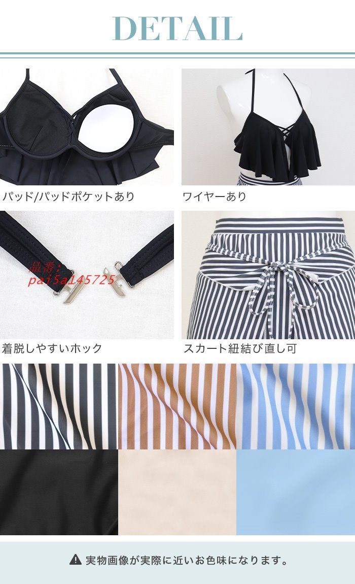 水着レディース ビキニ 3点セット セパレート 可愛い ワイヤー入り 30代 20代 ビキニ 体型カバー 盛れる ストライプ柄 オトナ女子 おしゃれ スカート付き pai5a145725 WWW_NICORILABO_COM