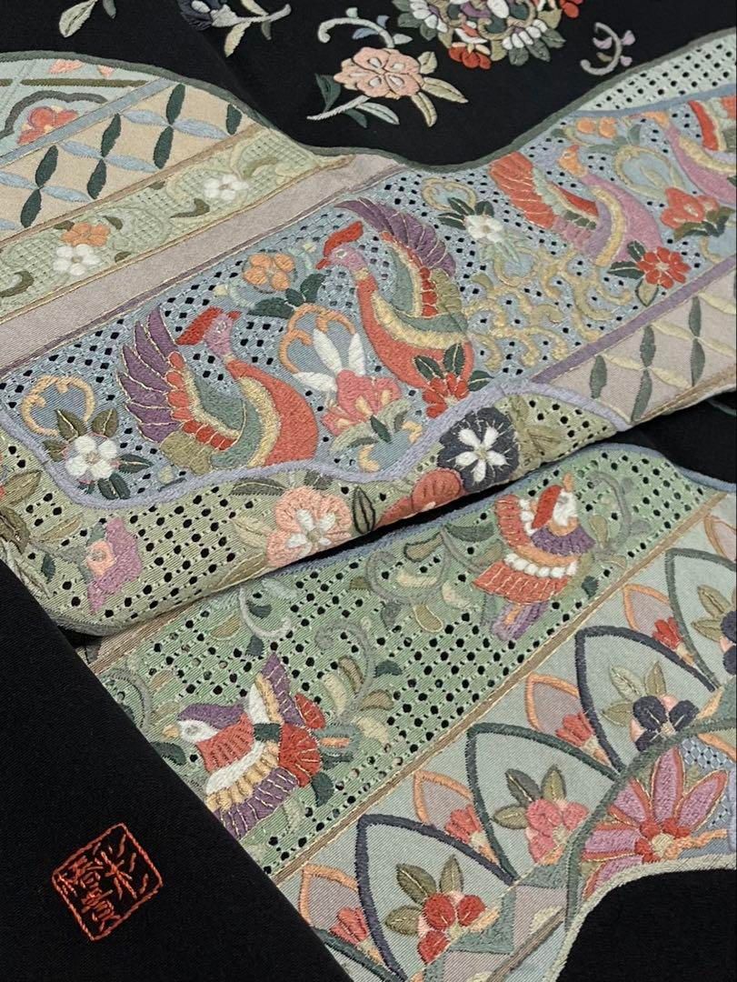蘇州刺繍 汕頭刺繍 作家物 黒留袖 鳳凰 鳥 比翼仕立て 金糸 正絹の検索結果