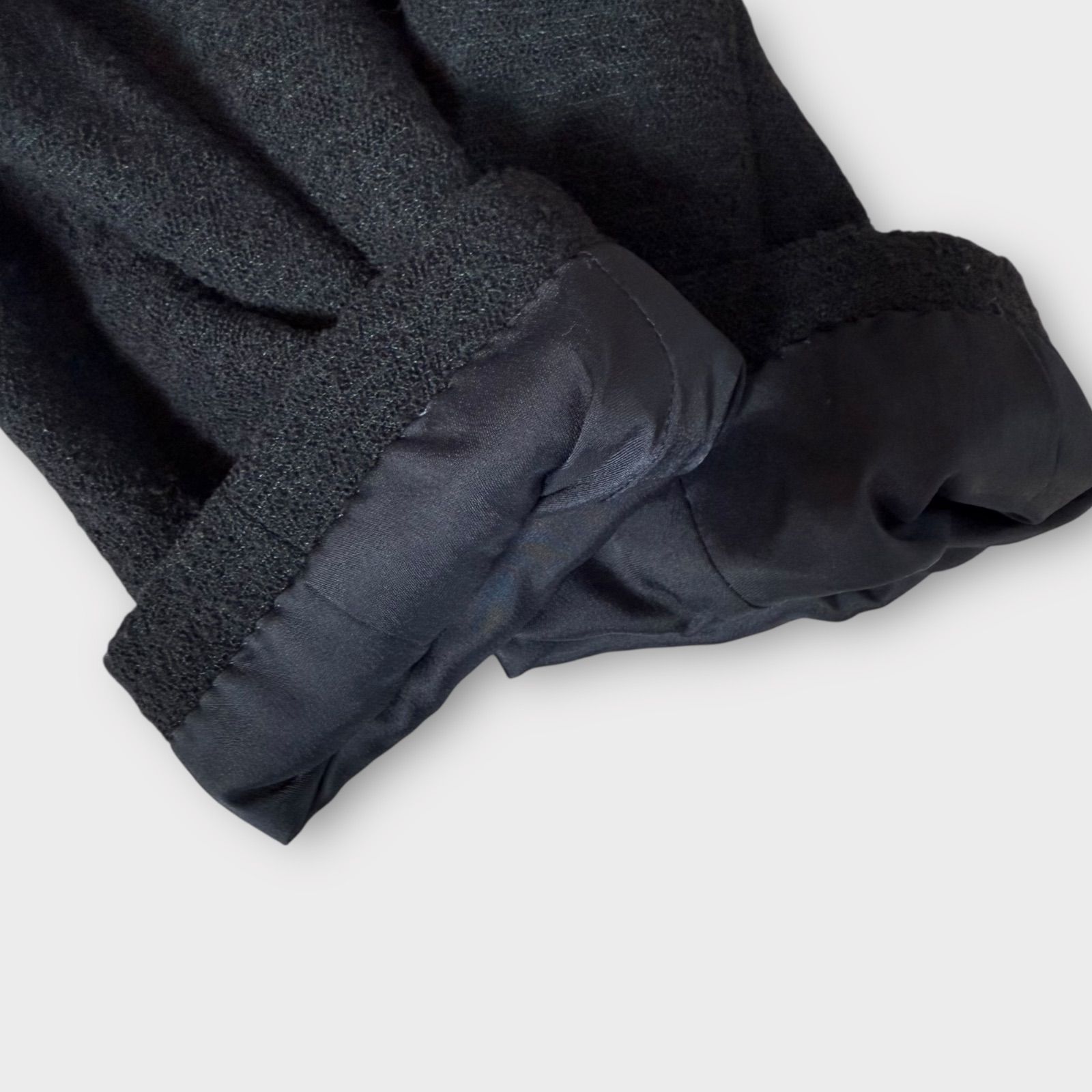 シャネル ジャケット スーツ セット CHANEL ブラック 黒 シルク コットン ノーカラー 春夏 サマー ツイード スカート カール ラガーフェルド 名作 40 42