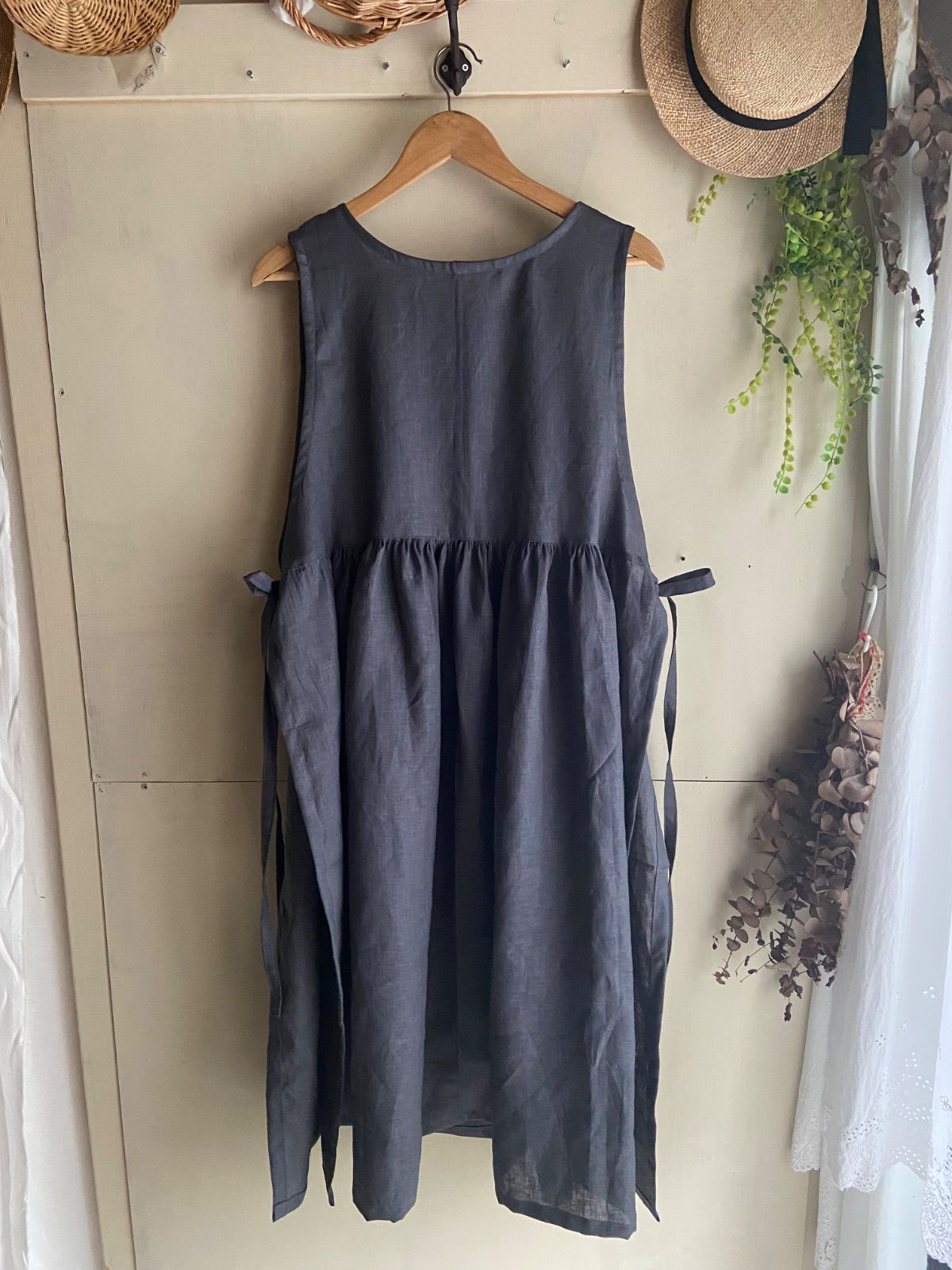 リネンエプロンワンピース ブルーグレー 重ね着 サイドリボンの検索結果