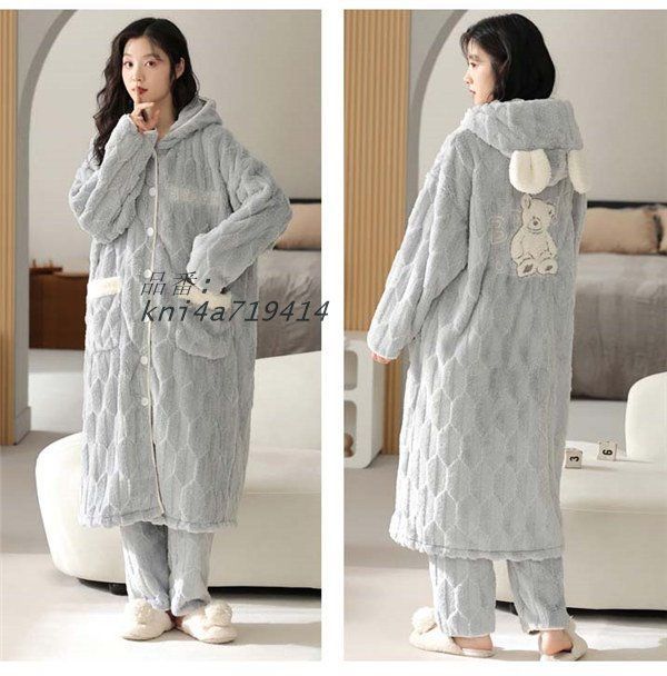 クマ柄 ペア パジャマ カップル ペア 部屋着 ルームウェア やわらか あったかい 長袖 前開き もこもこ 冬向き 韓国 裏起毛 レディース kni4a719414 WWW_NICORILABO_COM