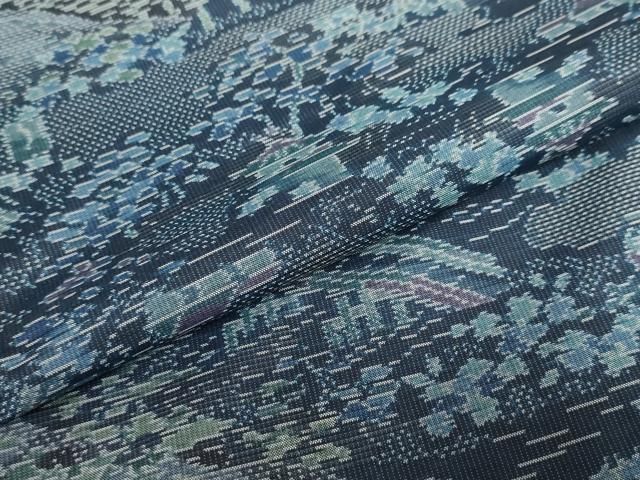 平和屋着物 上 夏物 本塩沢 夏塩沢 作家物 変わり絽 緑青色 反端付き ♥ DZAA9847kh5