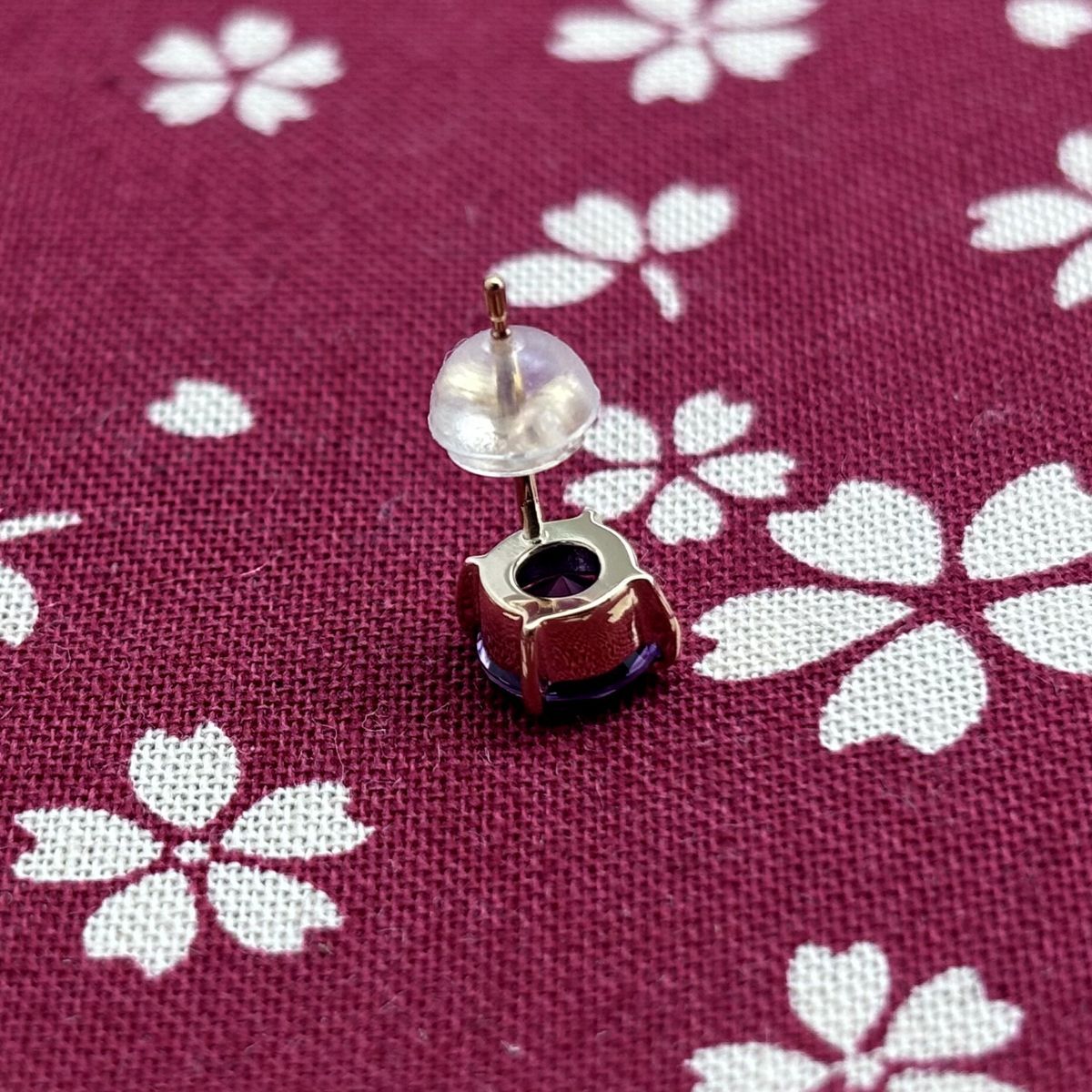 K10|さくらインカット ピアス アメジスト|片耳用|セカンドピアス つけっぱなし|和風 和装|着物 和モダン|10金 メンズアクセサリー|天然石 春|彼氏 誕生日|男性へのプレゼント WWW_NICORILABO_COM