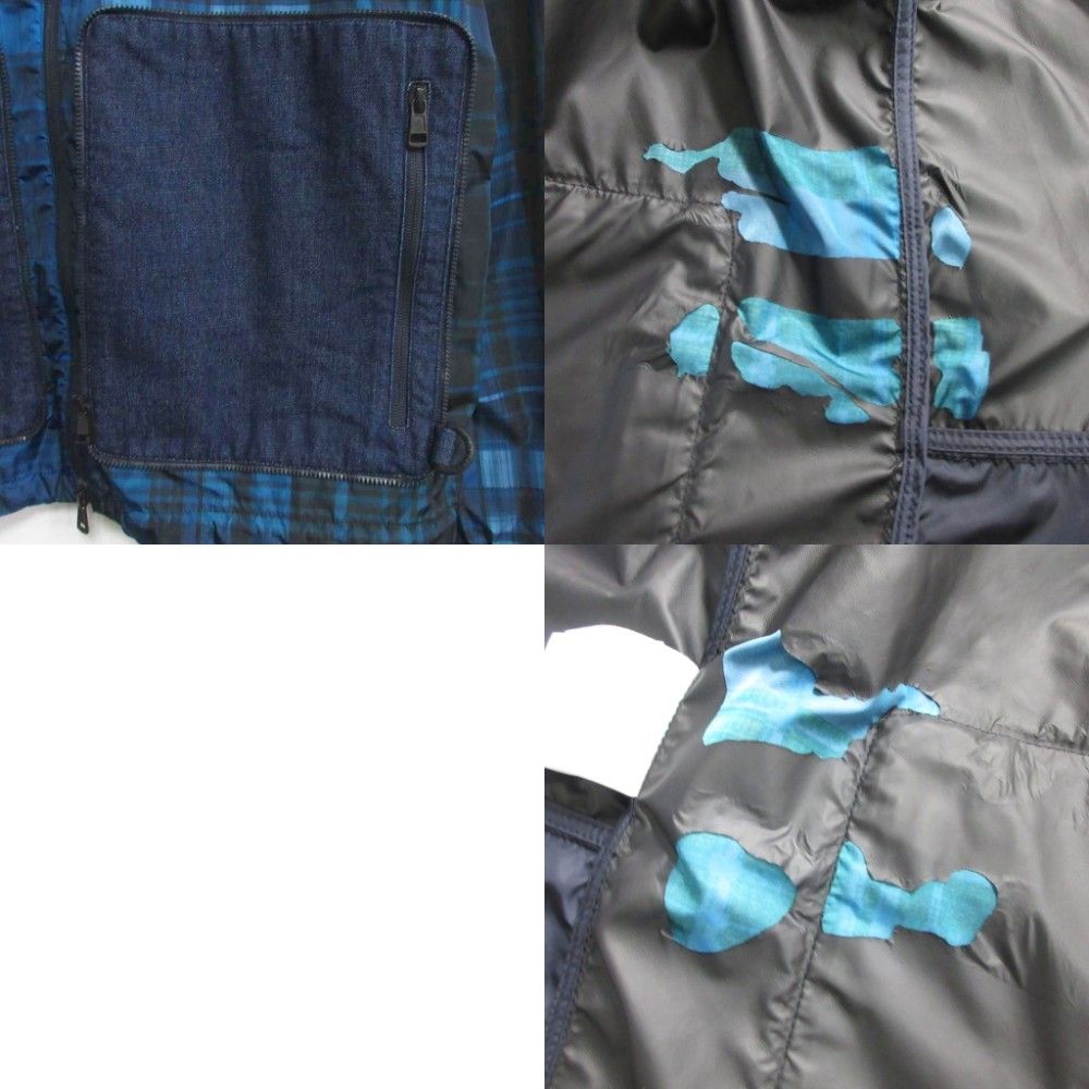 モンクレール MONCLER FAURES ナイロンパーカー ブルゾン チェック デニムドッキング 正規 青 ブルー 4 MNK2 WWW_NICORILABO_COM