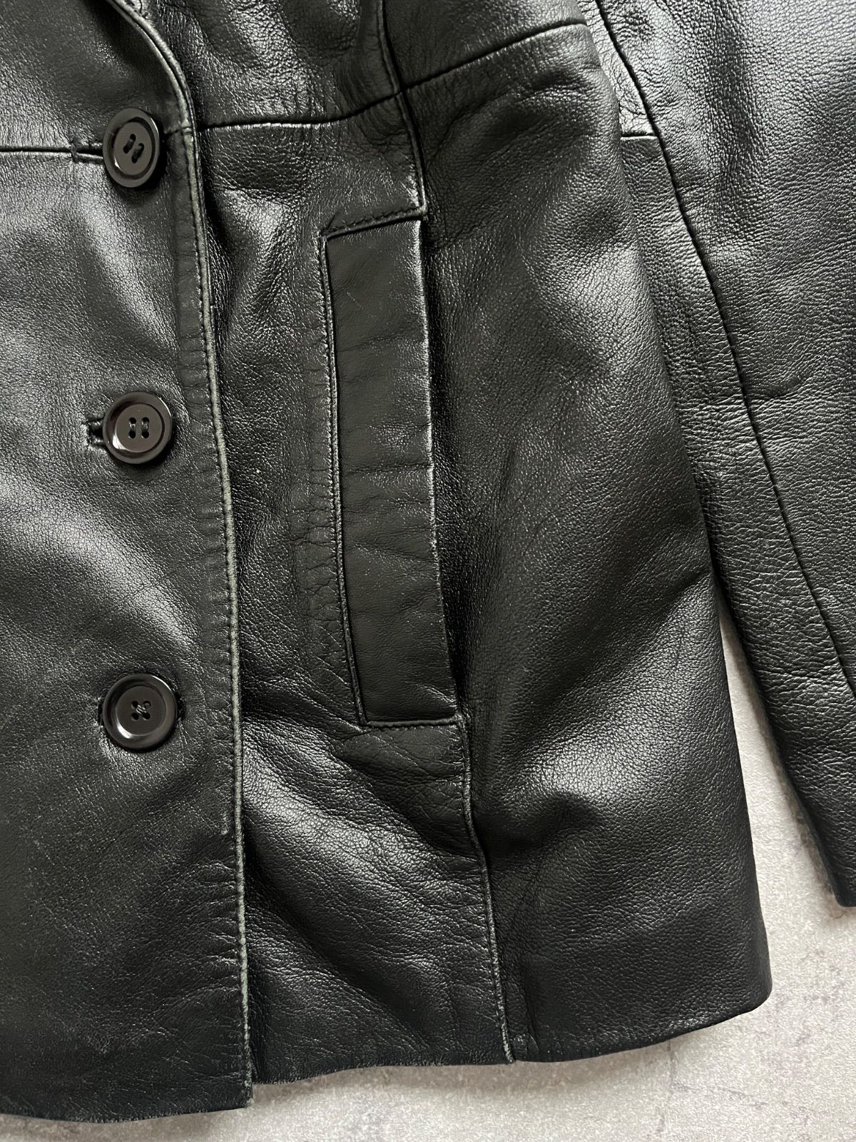 90s ヴィンテージ ENGLAND LAMB ステンカラー ラムレザーコート 羊革 レディース サイズ9 ブラック系