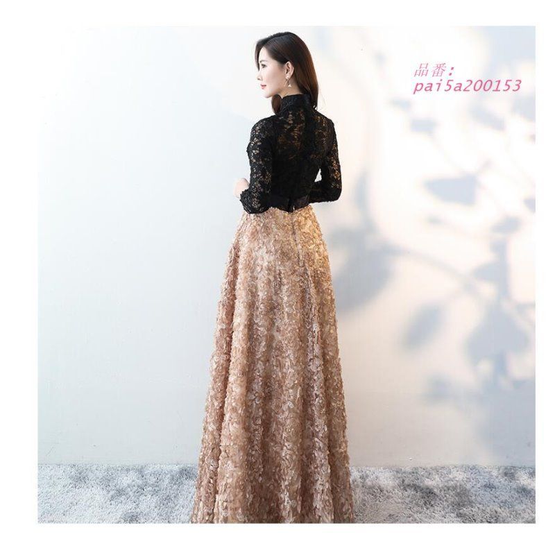 袖あり 立ち襟 ロングドレス 結婚式ドレス パーティードレス ウエディングドレス ピアノ 演奏会 二次会 大きいサイズ 衣装 舞台 披露宴 イベント用 発表会 pai5a200153 WWW_NICORILABO_COM