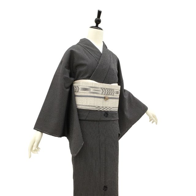 新古品 塩沢 袷 着物 ♥ 正絹 塩澤 黒 ブラック 縞 鈴 かわいい モダン お洒落 モノトーン カジュアル 春 秋 冬 塩澤 仕立て上がり 身丈168 裄68 Lサイズ みやがわ sb16468の検索結果