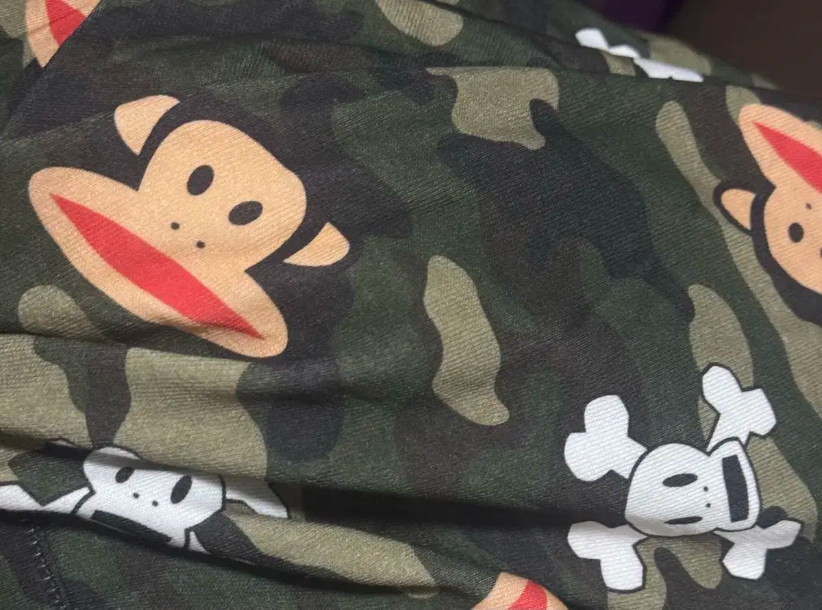 ユニークなミリタリーパターンに、可愛いモンキーキャラクターがポイントとして入っています。