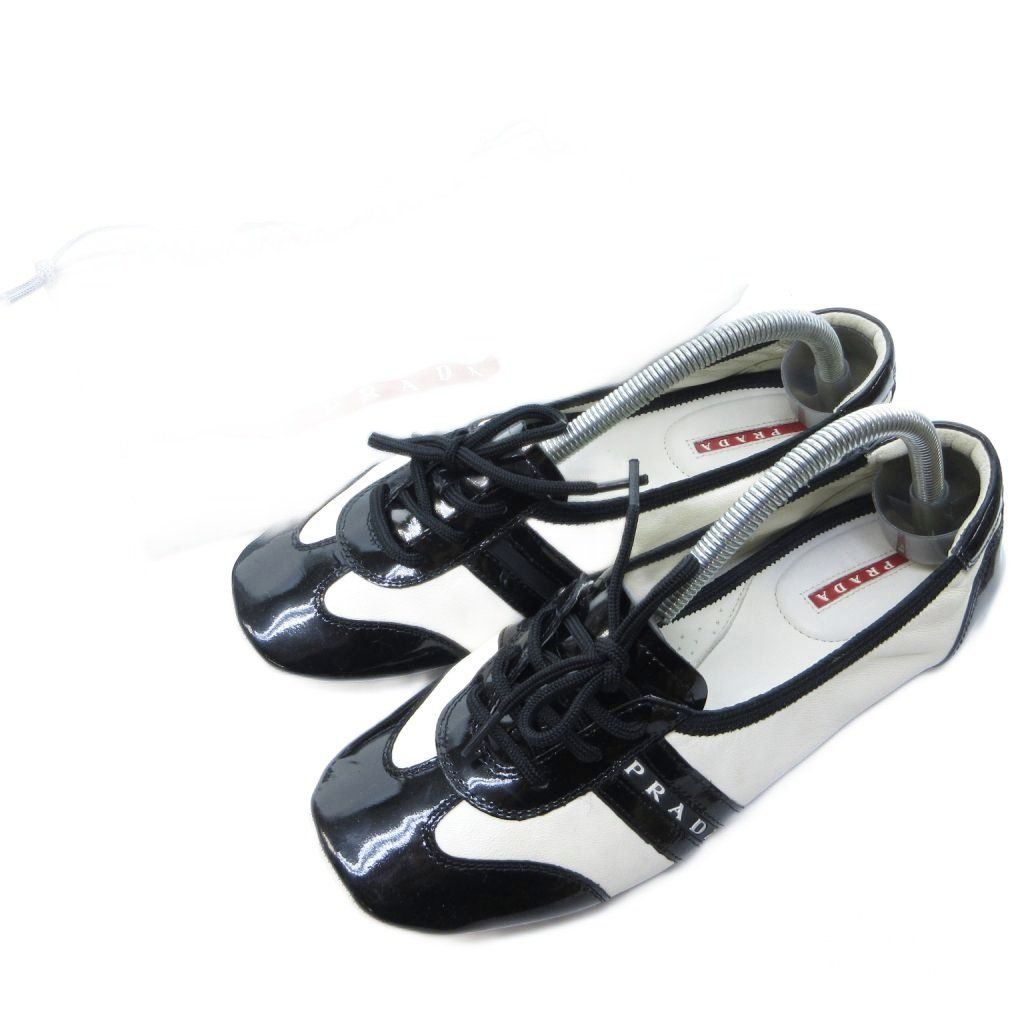 プラダスポーツ PRADA SPORT レザー バレエシューズ スリッポン スクエアトゥ フラット 白 ホワイト 黒 ブラック 約24.5cm IBO81 WWW_NICORILABO_COM