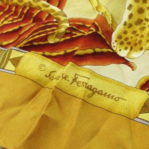 サルヴァトーレフェラガモ Salvatore Ferragamo スカーフ スクエア 大判 シルク 絹 ロゴ エキゾチック アニマル 茶 ブラウン |CK5 GY19 レディース WWW_NICORILABO_COM