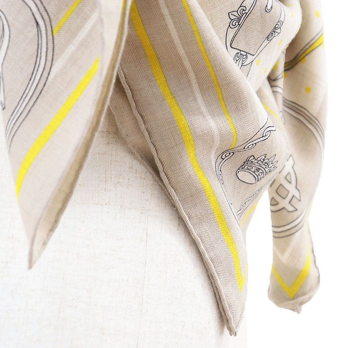 HERMES エルメス カレジェアン140 スカーフ LA PROMENADE DU MATIN 朝の散歩 馬具モチーフ カシミヤ × シルク メンズ レディース ユニセックス ベージュ イエロー フランス製 アンリ ドリニー WWW_NICORILABO_COM