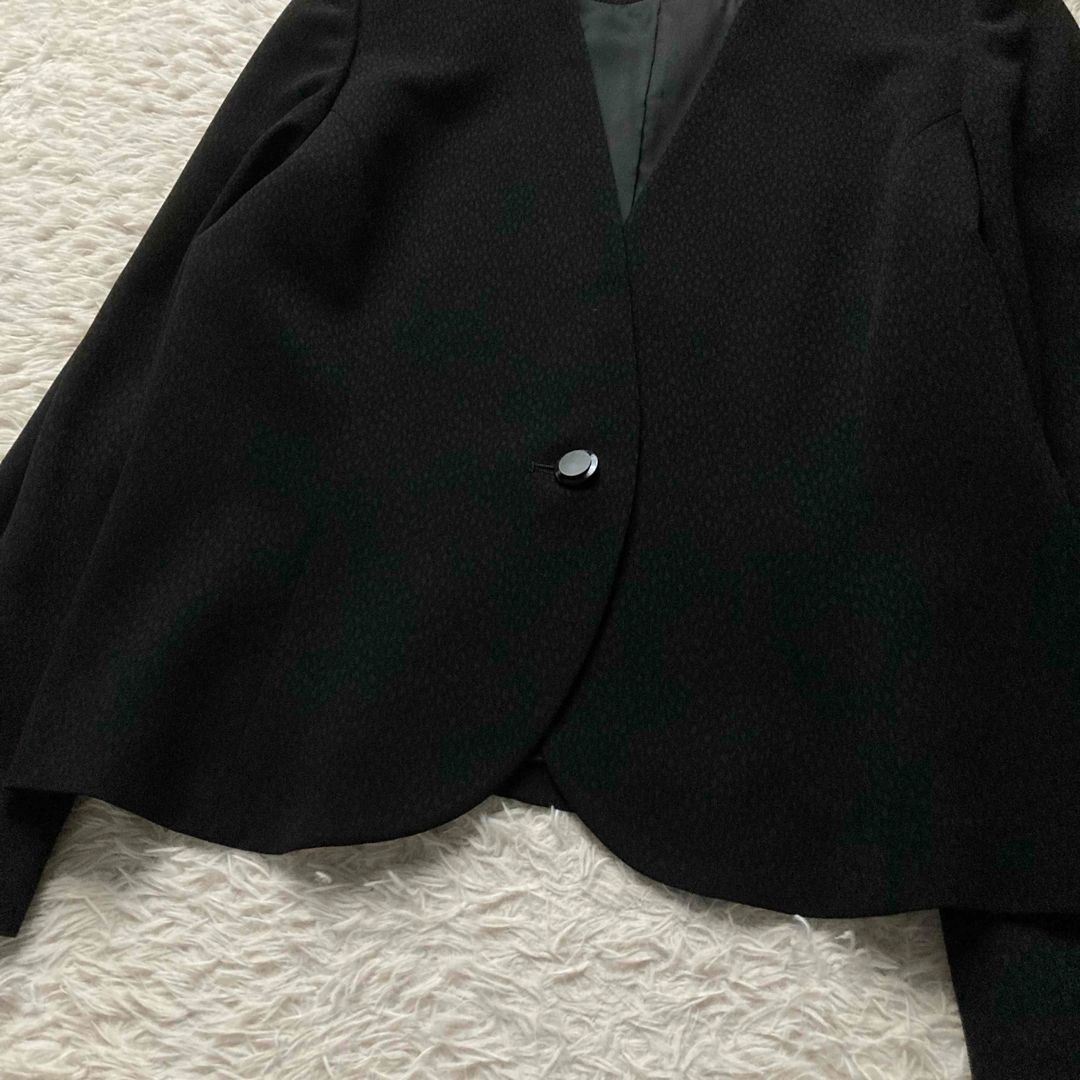 東京ソワール TOKYO SOIR ワンピーススーツセットアップ 冠婚葬祭 2点セット お受験スーツ ノーカラージャケット ブラック 大きいサイズ15