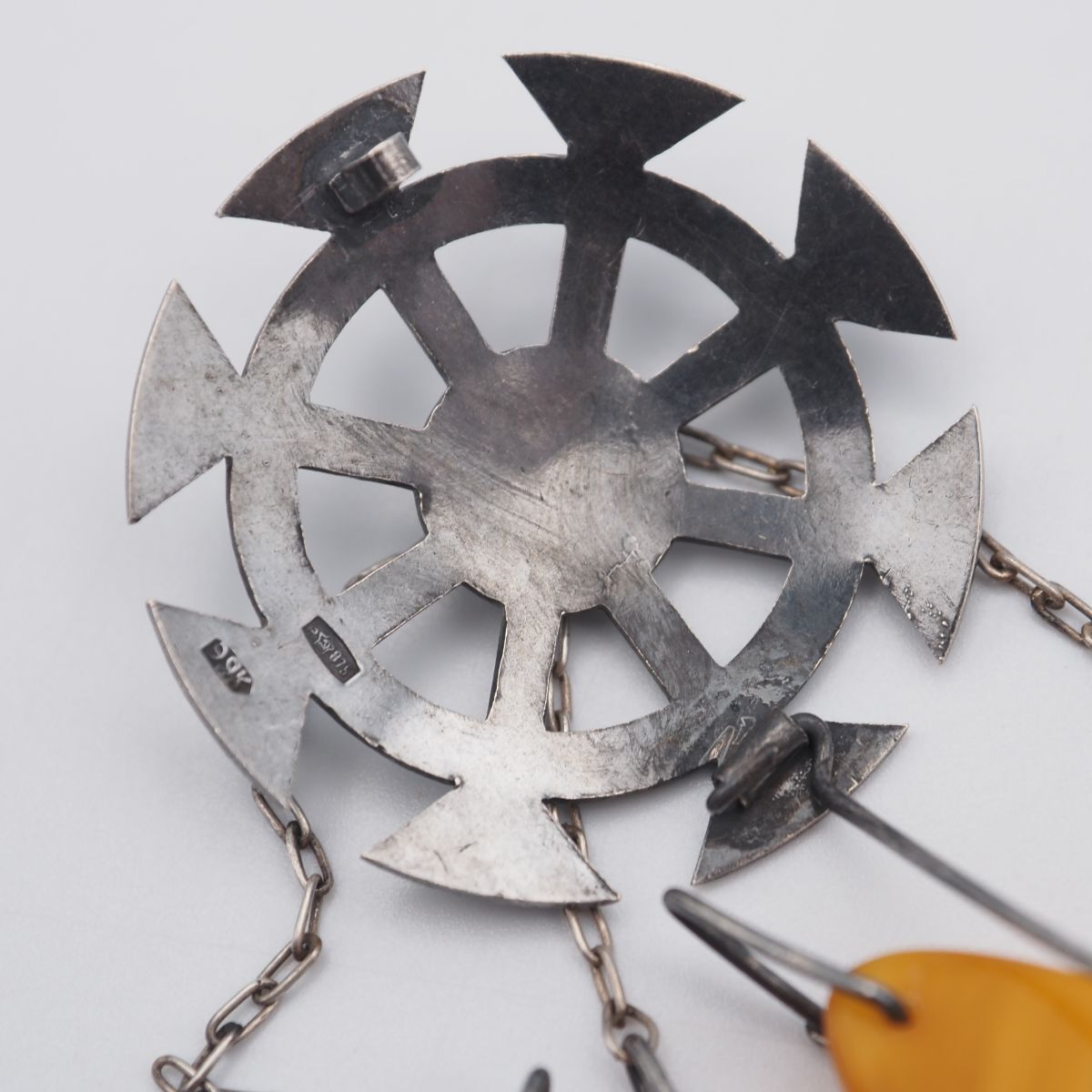 G764 琥珀 コハク アンバー 875刻印 ブローチ チェーン デザイン シルバー ヴィンテージの検索結果