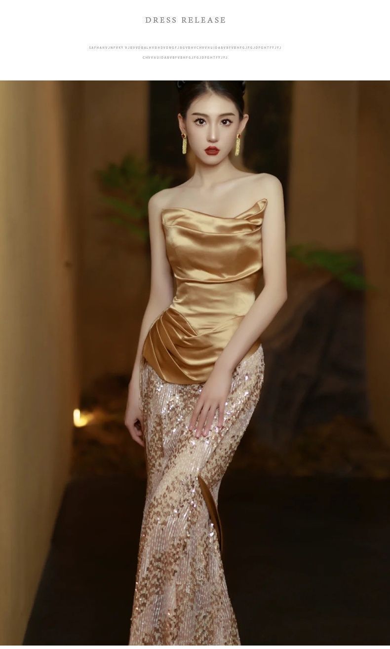 2025年 ゴールド ビストップ イブニングドレス 名媛 フィッシュテール オンステージ 演奏会 ウェディングドレスの検索結果