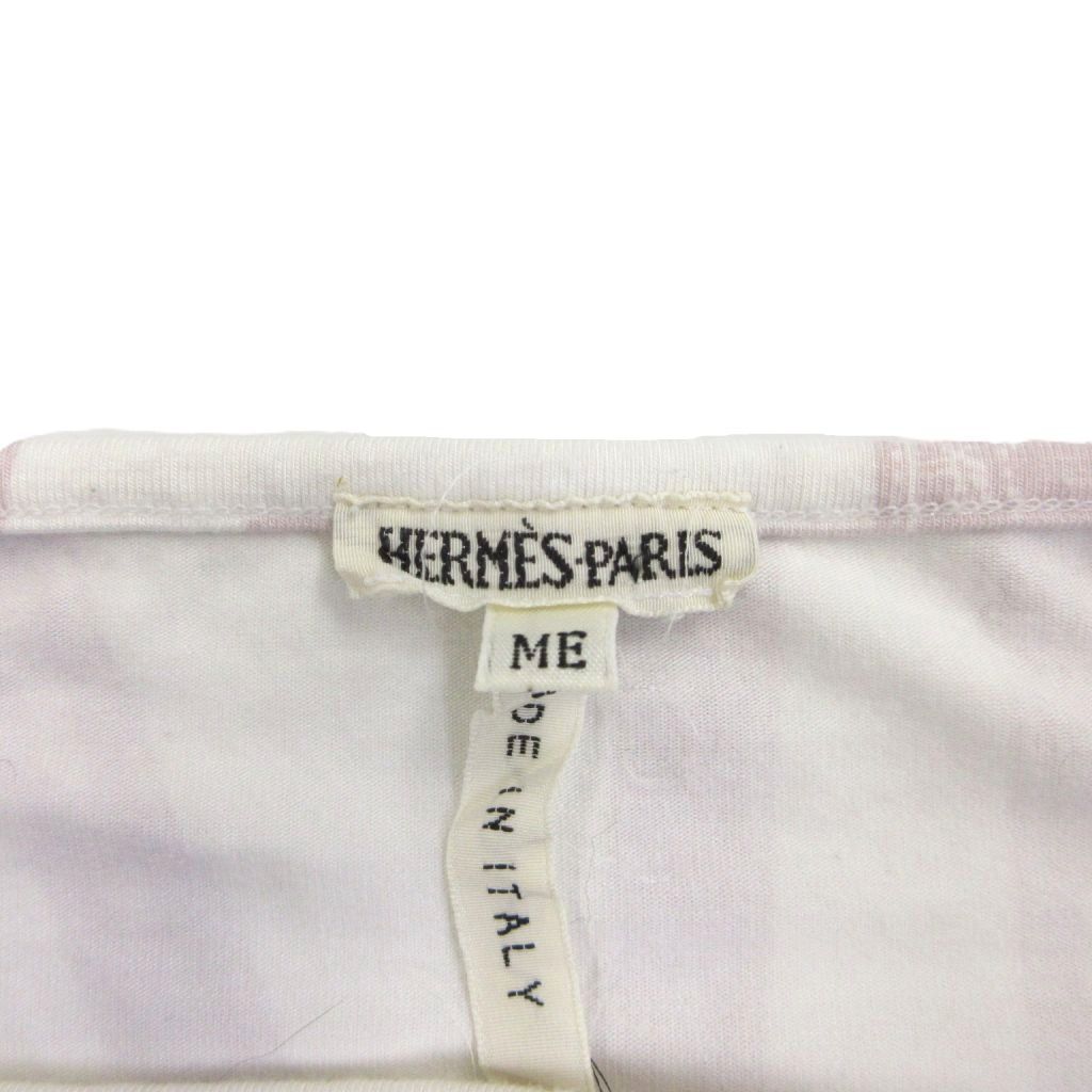 エルメス HERMES マルジェラ期 ボルデュックリボン カットソー Tシャツ 長袖 ボートネック 総柄 バイカラー ピンク 白 ホワイト 約M IBO81 1025 WWW_NICORILABO_COM