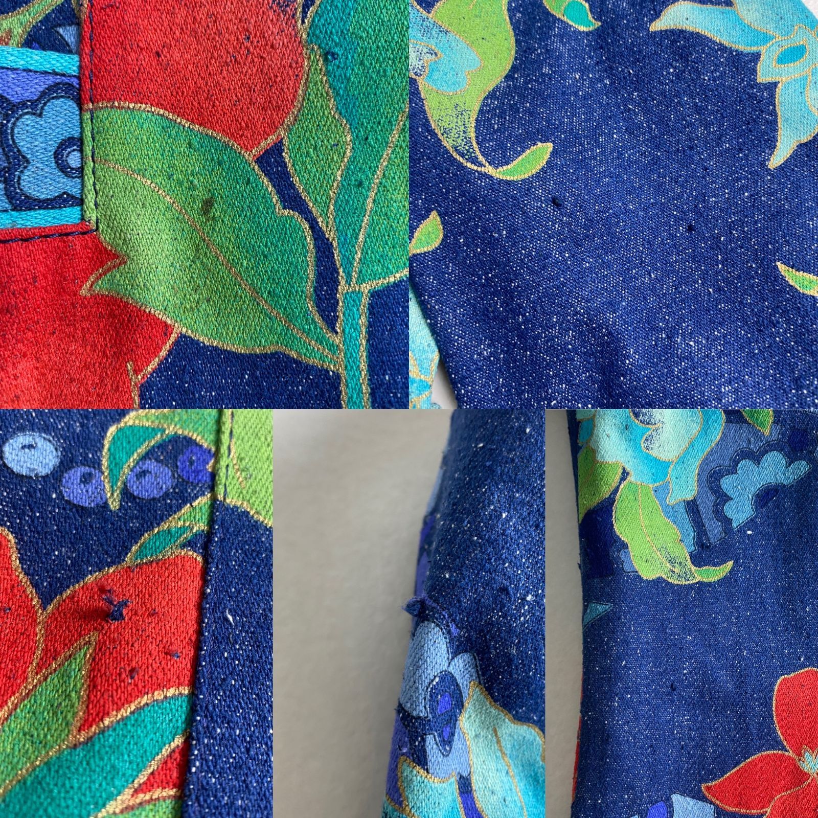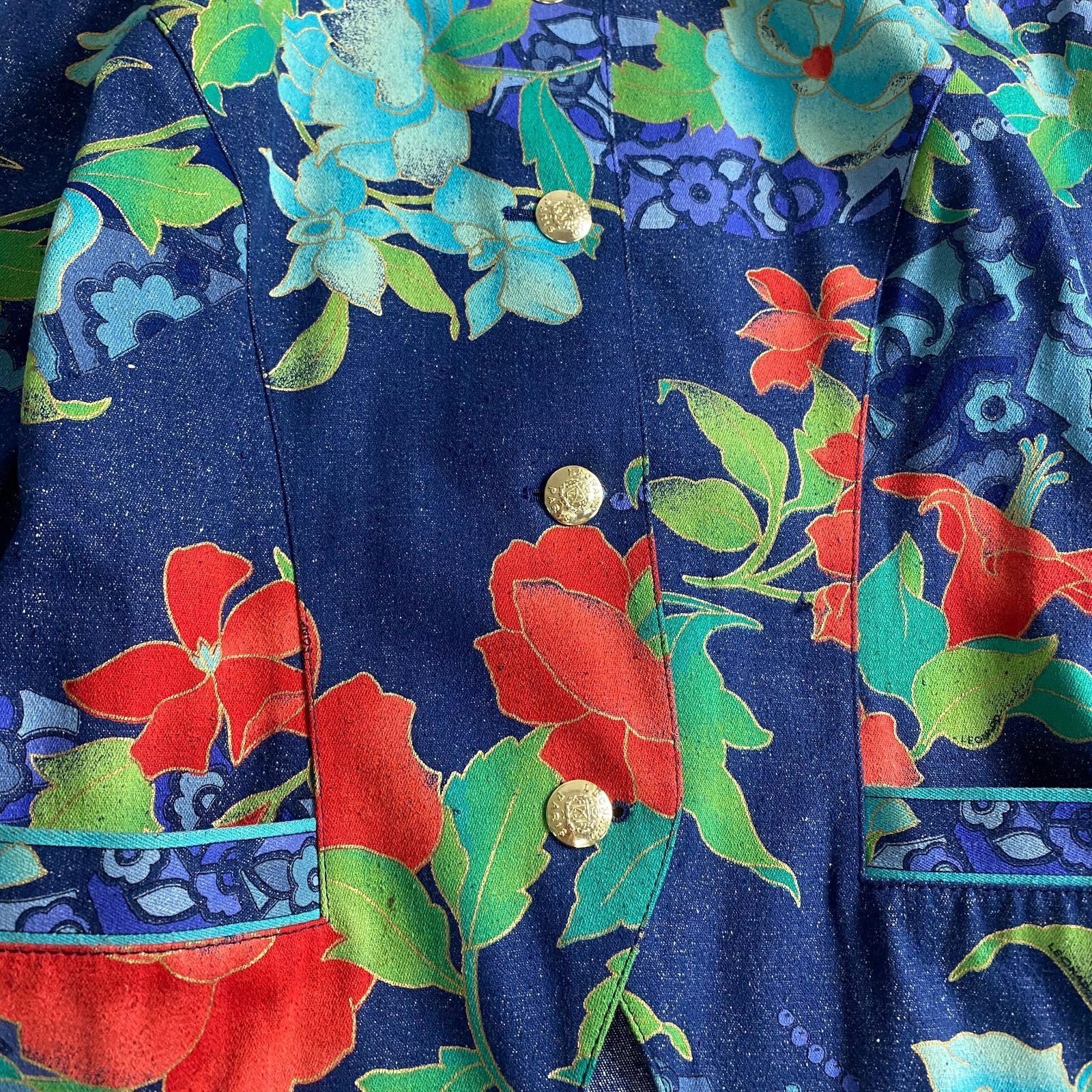 LEONARD ノーカラージャケット デニム 花柄 金ボタン XL レオナール シルク 13号の検索結果