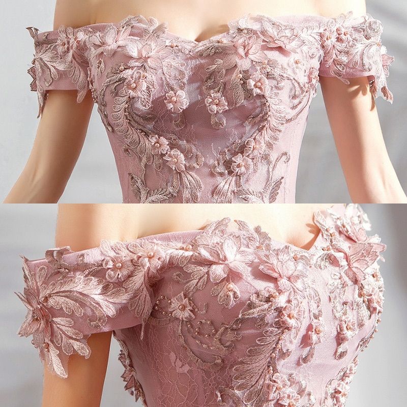 即日発送 オフショルダー ピンクドレス L ロングドレス 花刺繍 ビーズレース 結婚式 披露宴 前撮り 二次会 プリンセスライン ウェディングドレス カラードレス 感 pipsセレクト WWW_NICORILABO_COM