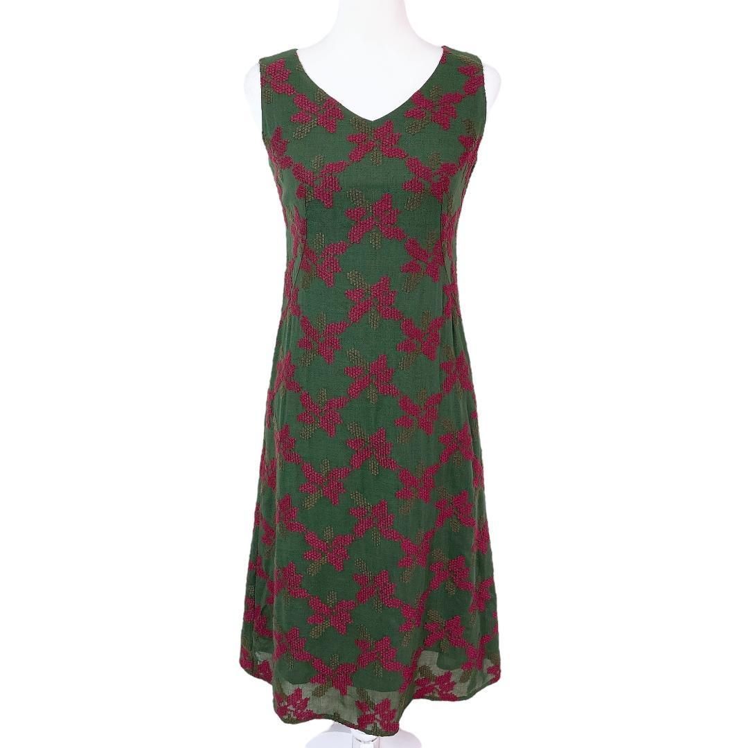 シビラ ノースリーブワンピース M 刺繍花柄チェック 緑×赤の検索結果