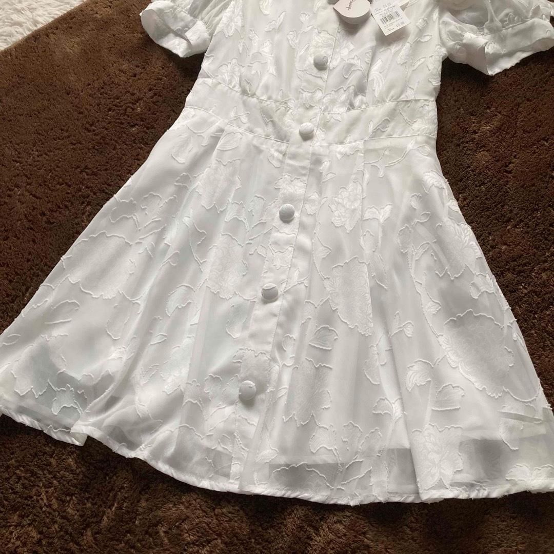 タグ付き Ank Rouge アンクルージュ フ ワンピース ミニワンピース フラワー刺繍 花柄 エンブロイダリー フリル パフスリーブ りぼん 白 ホワイト Mサイズ WWW_NICORILABO_COM