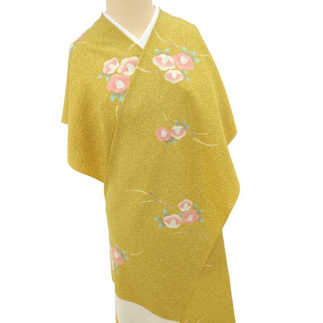 新古品 すごい値 小紋 反物 ♥ 着物 着尺 正絹 京KOMON 春晃 落款 黄茶色 椿 花 芝 カジュアル 未仕立て 新古品 春 秋 冬 袷にも 単衣にも リサイクル 送料無料 すごいね みやがわ nem00152 WWW_NICORILABO_COM