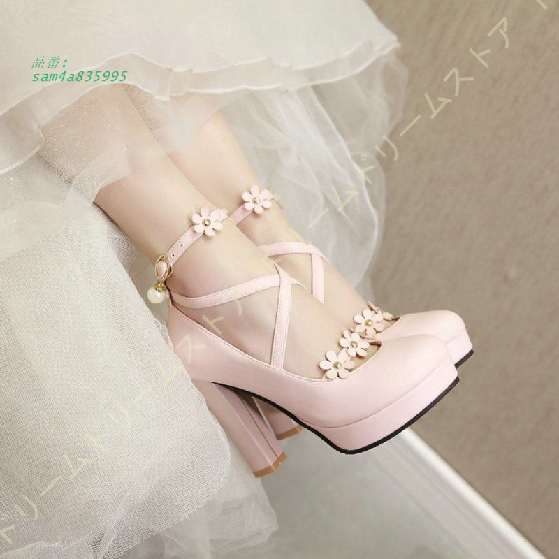 パンプス 痛くない 前厚 ハイヒール 太ヒール 結婚式 厚底パンプス ヒール11CM OL 通勤用 美脚パンプス 花飾り ラウンドトゥ クロスストラップ am4a835995 WWW_NICORILABO_COM