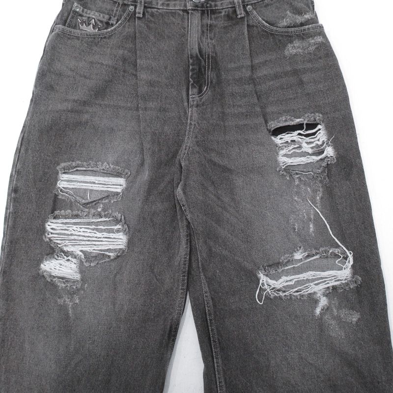 三重本店 9090 ナインティナインティ King Logo Buggy Denim Pants キングロゴバギーデニムパンツ 加工ジップフライデニムパンツ ダメージ加工 NN1270 ブラック サイズ XL 107の検索結果
