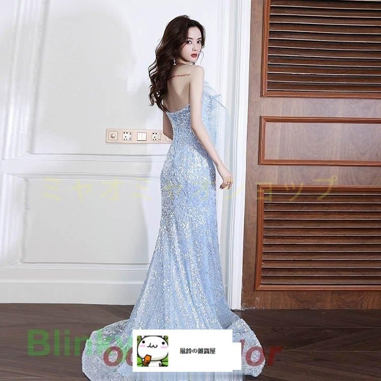 イブニングドレス マーメイドドレス キラキラドレス キレイめ 発表会 ブルー ビスチェドレス ロングドレス ノースリーブ 水色 グラデーション スパンコールの検索結果