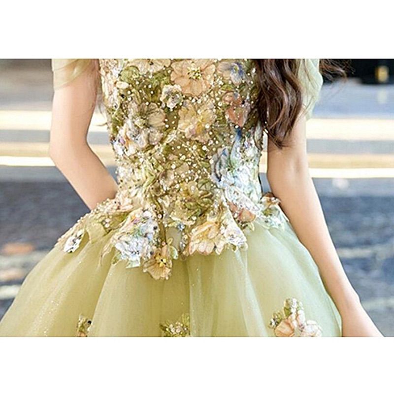 グリーン チュールドレス M 刺繍 花柄 ビジュー付き オフショルダー ボリュームスカート 演奏会 ステージドレス 発表会 ウエディング パーティー WWW_NICORILABO_COM