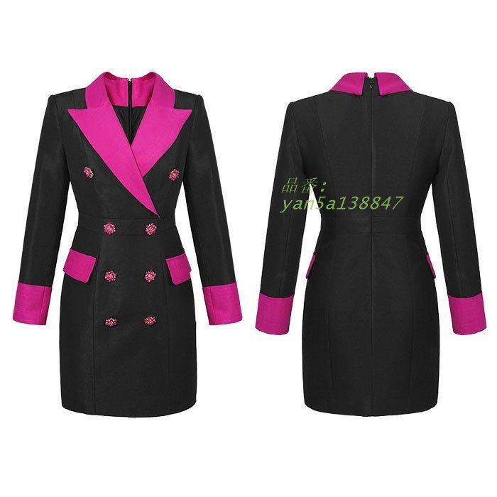 大き目襟付き歌手クールVネック胸開き 長袖ショートスーツワンピース 黒 セクシー キャバ スナック スーツ 韓国 ラウンジ yan5a138847 WWW_NICORILABO_COM