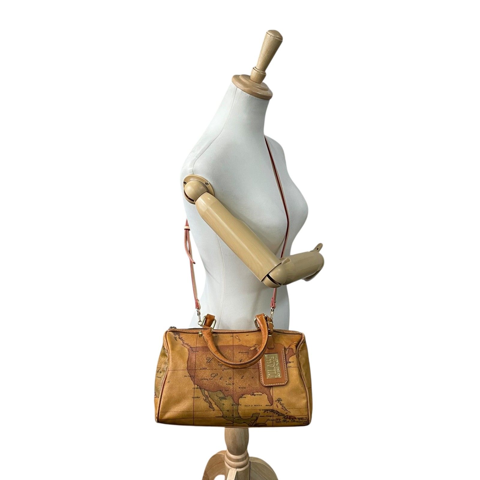 プリマクラッセ PRIMA CLASSE 地図柄 ボストンバッグ ミニボストン 2WAY PVC レザー ショルダー付き 茶色 ブラウン T4 WWW_NICORILABO_COM